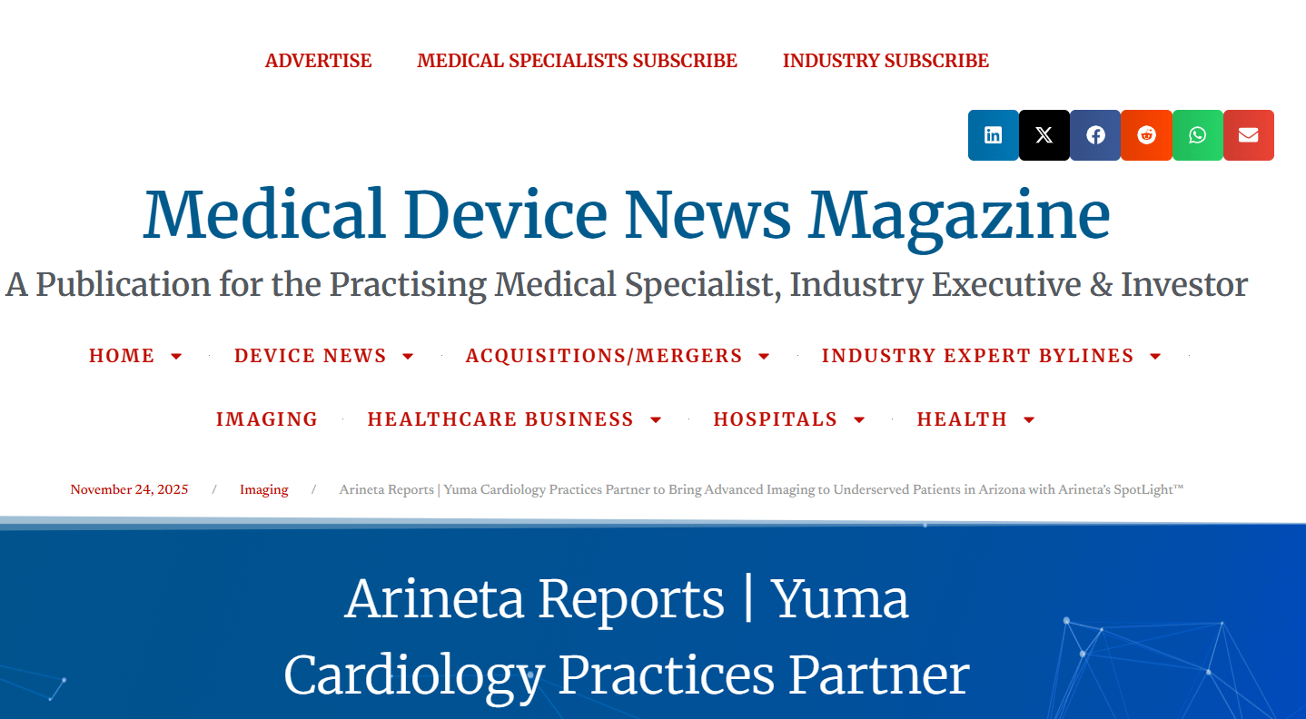 Yuma Cardiology Yuma cardiology practices partner to bring advanced imaging to underserved patients in Arizona with Arineta’s SpotLight Arineta November 25, 2025