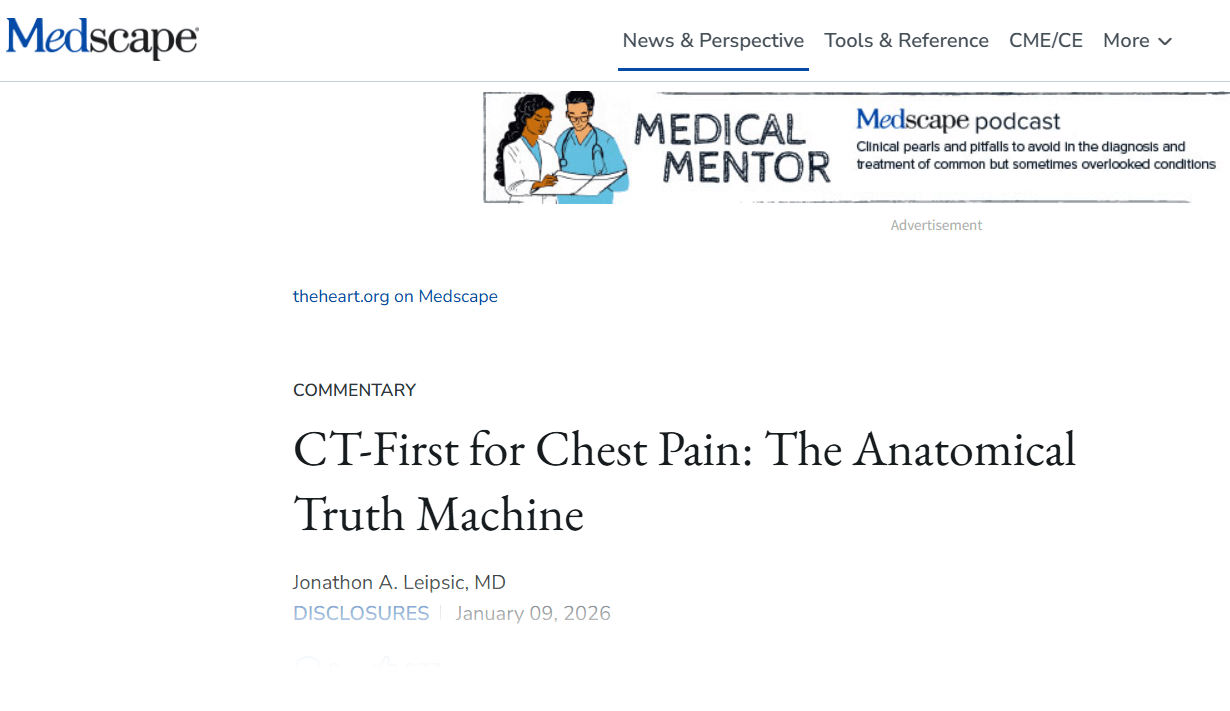 In his recent Medscape commentary, Dr. Leipsic makes the case for coronary CT angiography (CCTA) as the frontline test providing rapid, noninvasive visualization of coronary anatomy to confirm or exclude CAD, guide therapy, and better select patients for invasive procedures.