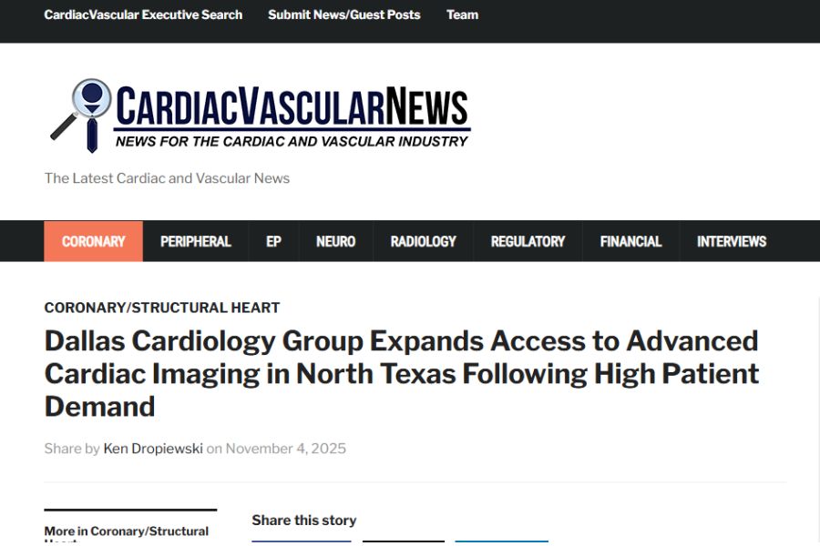 Dallas Cardiology Group Expands Access to Advanced Cardiac Imaging in North Texas Following High Patient Demand